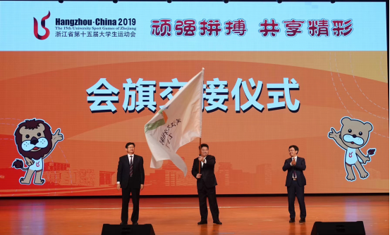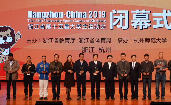 11月10日,浙江省第十五届大学生运动会在杭州师范大学交流中心体育馆落下帷幕。闭幕式上,浙江省教育厅副厅长韩平为获得浙江省第十五届大学生运动会“校长杯”的学校颁奖,我校荣获“校长杯”。