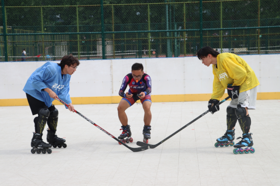 “小时候看过别人玩轮滑,但自己一直没有学过,到了大学发现学校有轮滑课,就马上报了名。”孙艺恺说,脚下技术练得差不多了,教练便开始带着他们体验起轮滑球。“其实我不太擅长运动,篮球、足球都没怎么玩过。接触轮滑球后,发现这项运动特别有意思,对速度和平衡性的要求很高,也需要各种战术配合。”