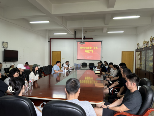 9月8日下午,学校发布《足交 使命愿景红皮书(2024版)》(下简称《红皮书》)。足交 相继召开理论学习中心组会议、党直支各小组会议和全体教职工大会,深入学习《红皮书》主要精神,深刻领会学校发展蓝图,结合体育工作实际,共谋体育事业高质量发展新路径。